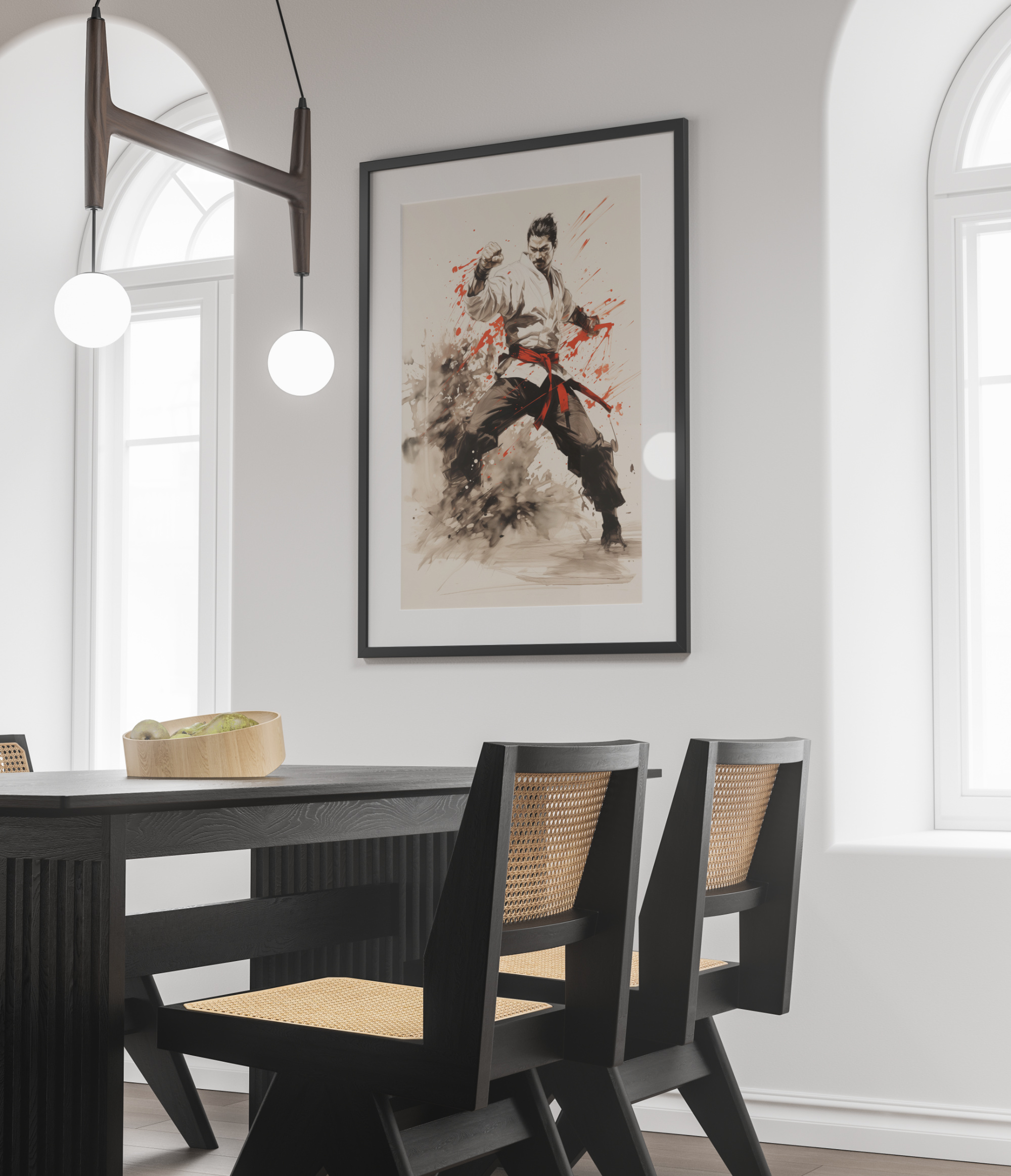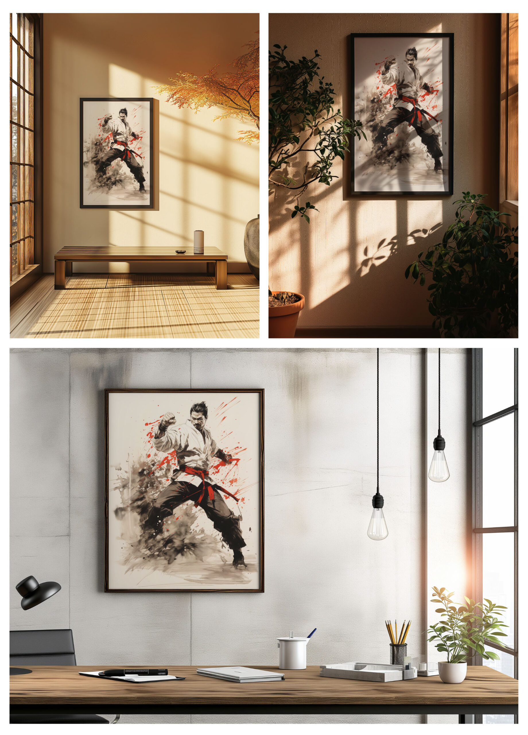 Our minimalistic ink brush paintings are inspired by the elegance of Karate and the simplicity of Japanese design. They make perfect decorations for your home, office, gym, or Dojo.